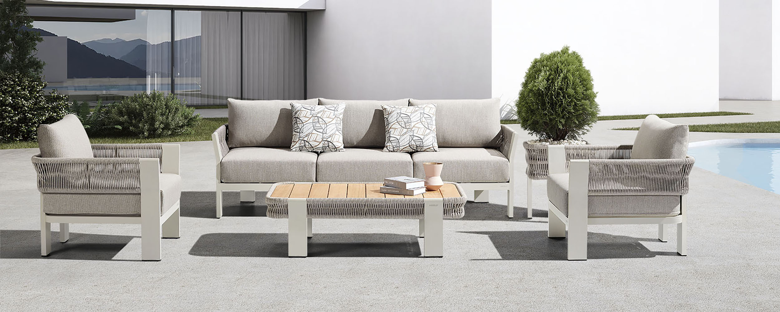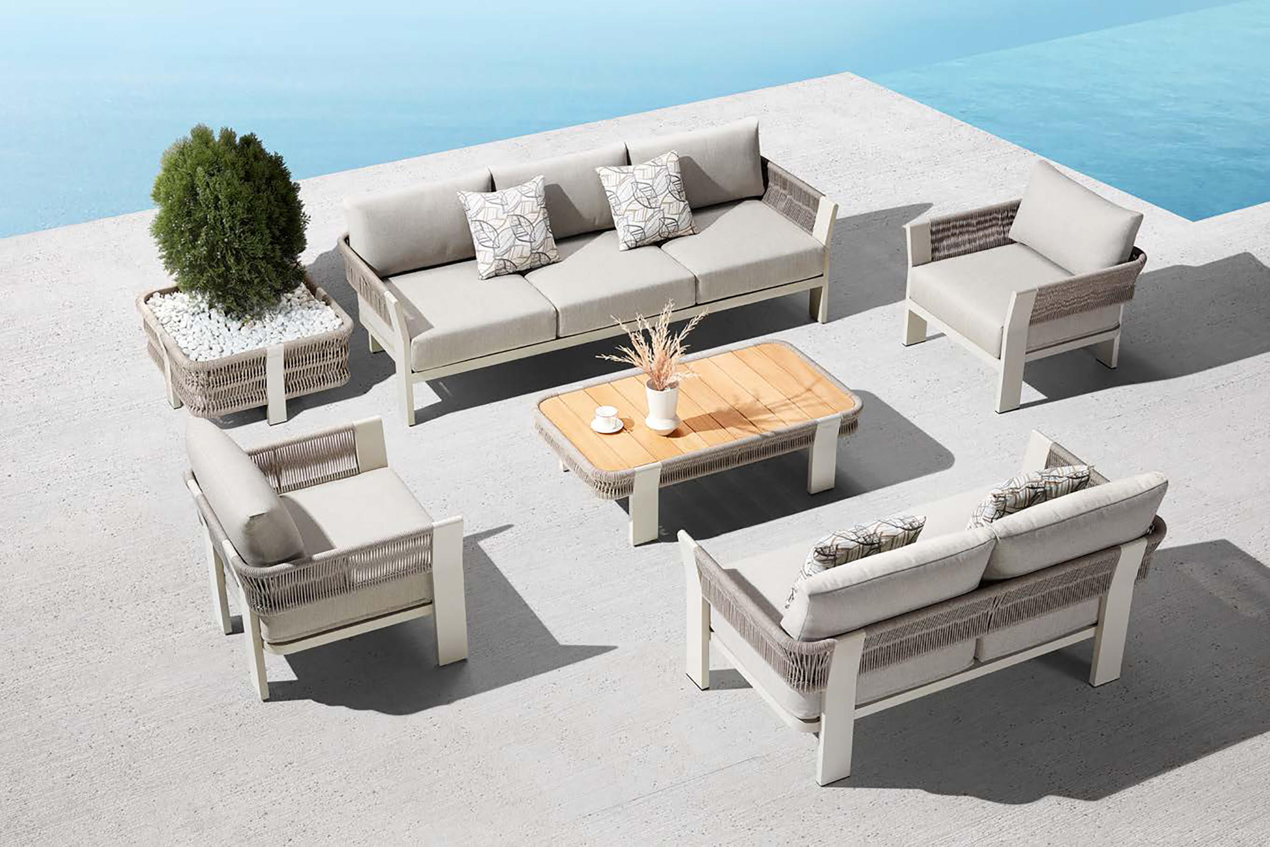 Immerse yourself in opulence as you lounge upon plush cushions, enveloped in the embrace of premium woven rope upholstery. Designed for both comfort and style, this collection seamlessly blends classical charm with modern allure, creating an ambiance of effortless sophistication in any outdoor setting.
